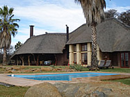 Description: We offer 5 rooms. Comforts and home hospitality are combined with an exceptional bush experience. 7 Chalets with air conditioning. Breakfast and lunch served in the lapa overlooking a waterhole. Game viewing from an open land cruiser. Swimming and hiking trails. Tarred airstrip. Hunting on request.