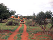 Auob Lodge, in the Kalahari, offers 17 campsites, electricity point at each site (24 hours, 220V), self-braai facilities at each camp, tents, caravans and motor homes accepted, ablution facilities with hot and cold water and wash up facilities. The red dunes of the Kalahari are in strong contrast to the white calcareous rocks of the valley formed by the Auob River. In an area of 8000 ha around the lodge, various antilope, giraffe, smaller mammals and many bird species can be seen.