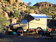 The camp near Keetmanshoop consists of comfortable, isolated bush camps with bathroom and a kitchen. The Mesosaurus fossil sites can be visited nearby. They have hot water showers, shaded camping and a kitchen area
